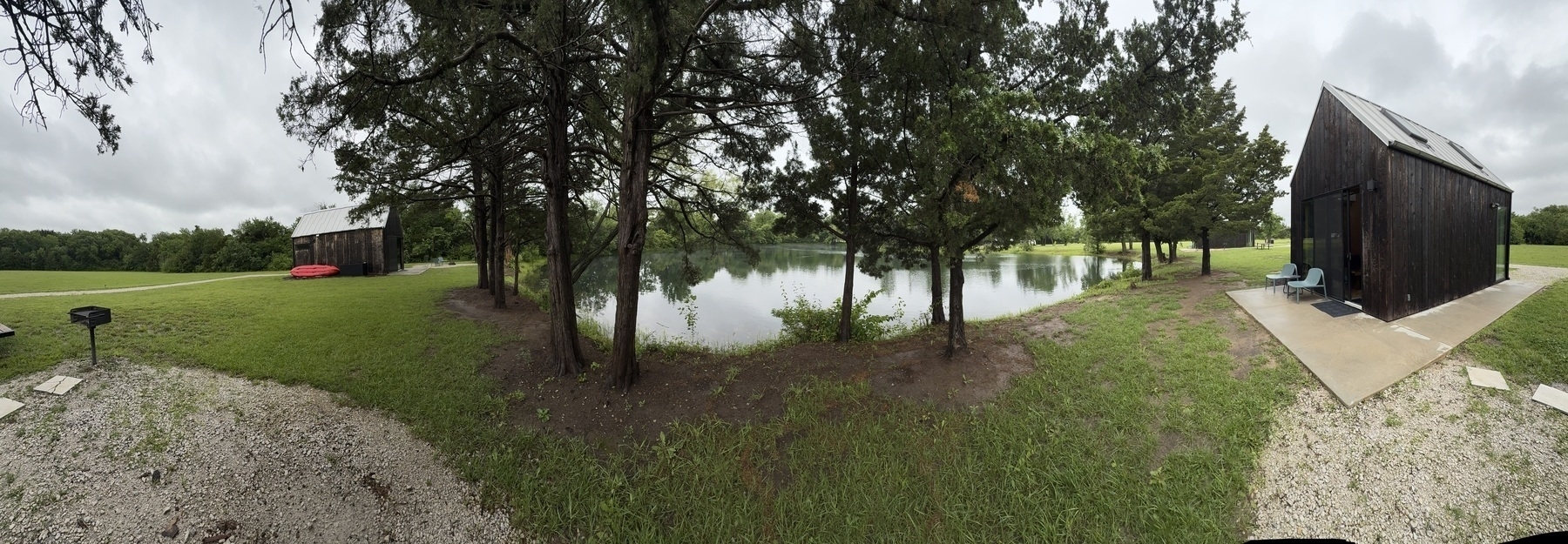 For our 19th Anniversary, Maura and I drove to Humboldt, Kansas at the Base Camp camping/glamping area. Humboldt is a cute town, with more to do than I expected, but we are really here to relax and celebrate each other. This is a perfect spot to disconnect from daily life and reconnect with nature. The cabin is a charming, modern tiny house with everything we need. Unfortunately, it decided to rain the whole weekend, though honestly, we don’t mind - we can can hibernate with our books, a few games, and each other. The rain is really nice on the fishing pond in front of the cabin and on the two skylights. We will definitely be back, hopefully it won’t be raining next time and we can use the fire pit next to the cabin. They also have canoes and bikes that you can borrow for the pond and trails around the campground.